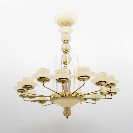 ZustandAusgezeichnetFarbenGold, CremeMaterialMurano-Glas, MessingAnzahl der Artikel1Höhe132 cmBreite122 cmTiefe122 cm