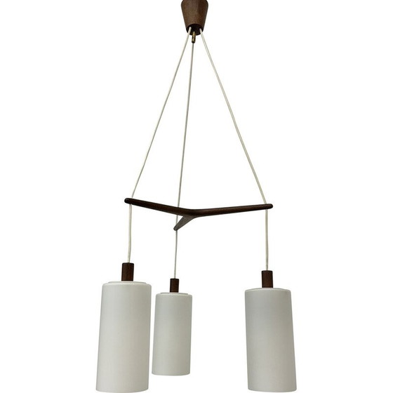 Mid Century Pendelleuchte aus Teakholz und Opalglas, 1970er Jahre