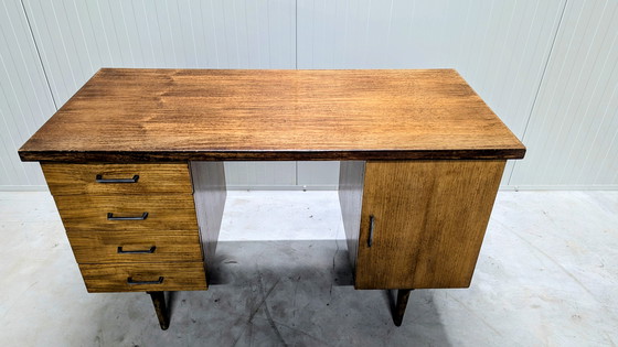 Dieser Vintage-Schreibtisch aus den 60er und 70er Jahren verkörpert die Essenz des Mid Century Modern Designs. Mit seinen klaren Linien und der warmen Holzoberfläche verleiht er jedem Raum einen Hauch von Retro-Eleganz. Ideal für Heimbüros und stilvolle Büroumgebungen.