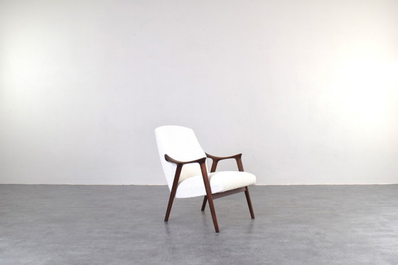 Mid-Century „Tenor“-Sessel aus Teakholz und Bouclé von Møre Lenestolfabrikk, 1960er Jahre.