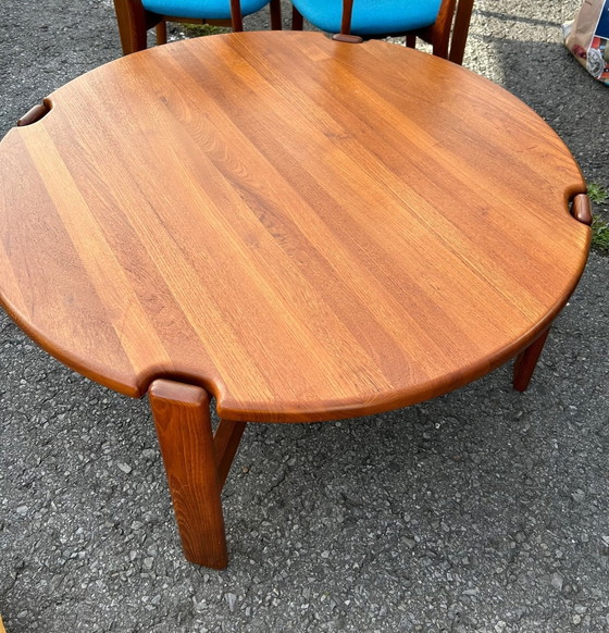 Runder Couchtisch aus massivem Teakholz, 60er Jahre, entworfen von Illum Wikkelsø für Mikael Laursen. Wunderschöne Beine. In perfektem Zustand, nur eine leichte Schramme. Möglichkeit, die Beine bei Bedarf von meinem Tischler kürzen zu lassen.