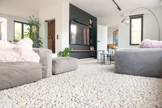 Dieser handgefertigte Teppich besteht aus 100 % Wolle. Die großen Schlingen bilden ein verspieltes Muster mit Akzenten in Gold, Ocker und Schwarz. Mit seinen außergewöhnlichen Maßen von 3 x 6 Metern verleiht dieser Teppich Ihrem Wohnzimmer ein luxuriöses Ambiente!