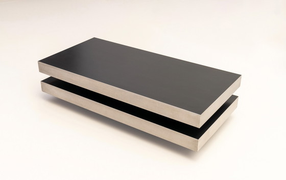 Vintage-Couchtisch in perfektem, neuwertigem Zustand. Seine elegante und minimalistische Struktur wird von horizontalen Linien und ausgewogenen Proportionen geprägt. Dieser Tisch verleiht jedem Raum einen Hauch von zeitgenössischer Raffinesse. Die neutralen Farbtöne und das schlichte Design machen ihn zu einer vielseitigen Ergänzung, die sowohl moderne als auch klassische Einrichtungen ergänzt. Dieses Stück ist aus erstklassigen Materialien gefertigt, die für Langlebigkeit, leichte Reinigung und dauerhafte Schönheit sorgen. Tragen Sie es entsprechend dem Alter und der Verwendung. Bitte zögern Sie nicht, uns für weitere Informationen zu kontaktieren. Wir würden uns mehr als freuen, Ihnen auf jede erdenkliche Weise helfen zu können. In angemessenem Rahmen verhandelbar.
