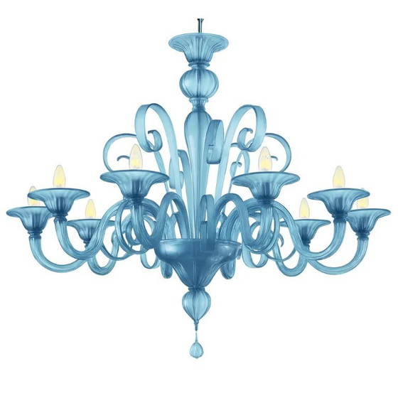 Moderner Kronleuchter aus venezianischem blauem Satin-Muranoglas mit 8 Armen