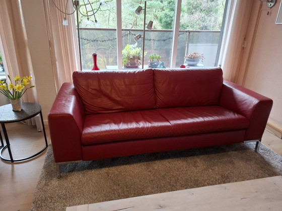 Wunderschönes, unbeschädigtes rotes 2,5-Sitzer-Ledersofa von Montel mit Chrombeinen. Das Leder ist von besonders hoher Qualität und entspricht daher nicht der Standardausführung. Aufgrund eines Umzugs wird das sechs Jahre alte Sofa durch ein anderes Möbelstück ersetzt. Es wurde stets mit Montel-Lederpflegeprodukten sorgfältig gepflegt. Die Maße des Sofas sind: 208 cm lang, 88 cm tief, 84 cm Rückenlehnenhöhe und 45 cm Sitzhöhe. Der Neupreis betrug 1739 €.