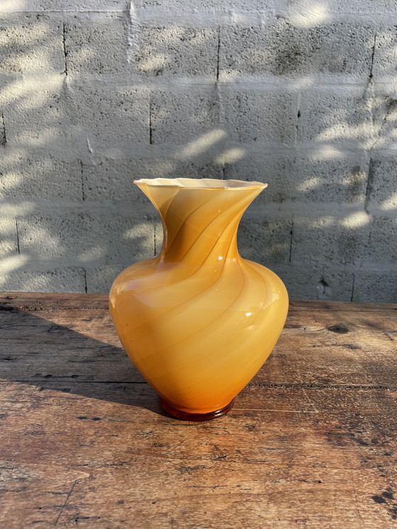 Wunderschöne Vase aus Opaline Swirl in Karamelltönen aus Murano. Mundgeblasenes Glas, handwerkliche Herstellung von höchster Qualität. In sehr gutem Zustand.