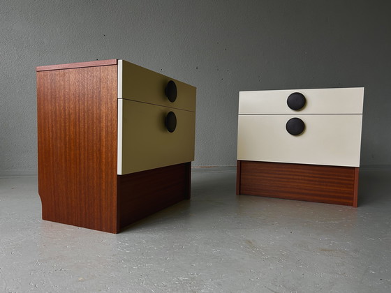 Nachtkastje-Set aus der Mitte des Jahrhunderts in Weiß/Teakholz – Jaren 60/70
