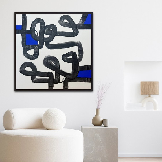 ZustandAusgezeichnetFarbenBlau, Weiß, SchwarzMaterialLeinwandAnzahl der Artikel1Höhe90 cmBreite90 cm