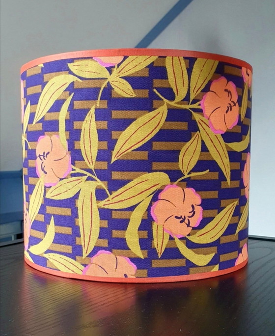 Dieser fröhliche Lampenschirm ist neu, handgefertigt und sorgt für ein wunderschönes, stimmungsvolles Licht. Er ist mit Chintzband verziert.
