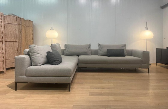 Wunderschönes Design-Ecksofa Aikon inklusive zusätzlicher Zierkissen, bezogen mit einem stilvollen Stoff. Das Aikon ist bekannt für seinen hohen Sitzkomfort, die klaren Linien und die modulare Bauweise.