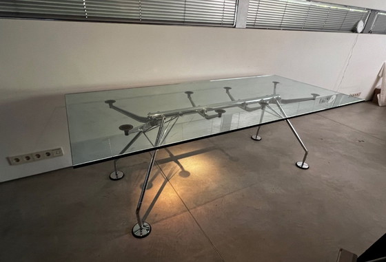Wir präsentieren den Nomos Tisch von Tecno, ein Meisterwerk modernen Designs, entworfen vom renommierten Architekten Norman Foster. Dieser Tisch verkörpert Eleganz und Raffinesse und ist somit das perfekte Herzstück für jeden modernen Raum.