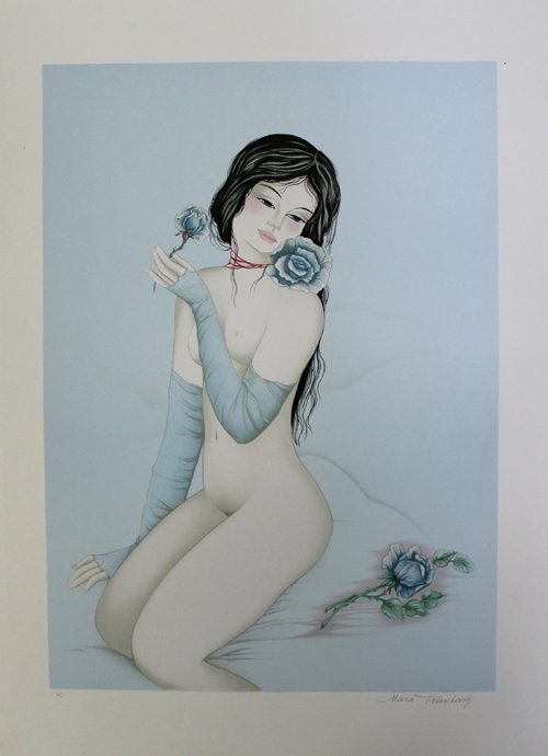 Nu á La Rose - Signierte Farblithographie von Mara Tran-Long