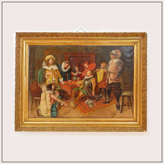 Öl auf Leinwand im Großformat "Die Musketiere in der Taverne" - Ferdinand Tirius (1896-1976). - Szenen aus dem Genre.