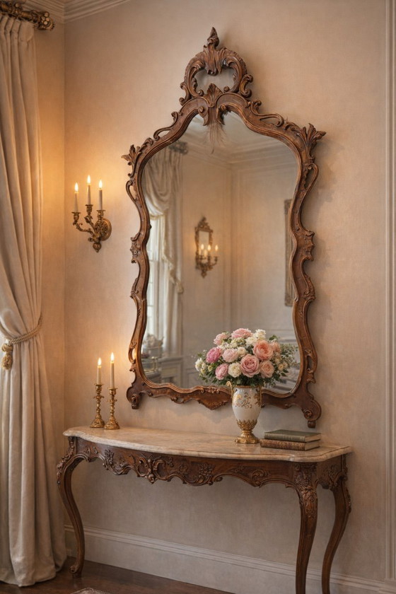 Ein prächtiger antiker Spiegel aus der zweiten Hälfte des 19. Jahrhunderts im Rokokostil.