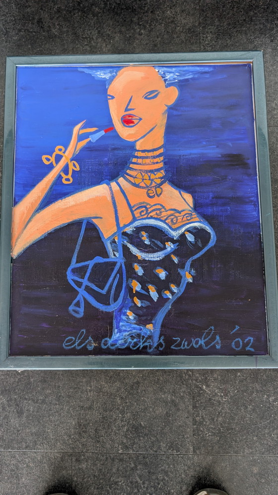 Originalgemälde von Els Zwols „Frau mit Lippenstift“ (2002)