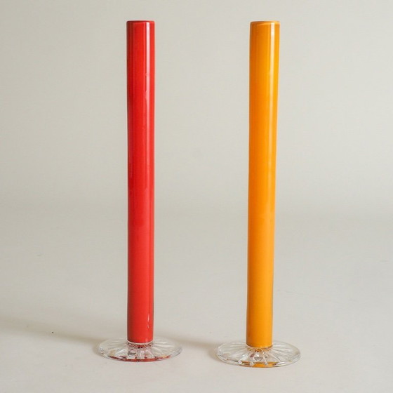 Zwei hohe Vasen von Anne Nilsson für Orrefors, hergestellt in Schweden in den 1980er Jahren.