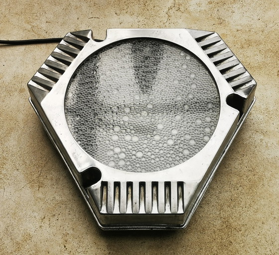 Bauhaus, Brutalist Stil. Original-Glas für schöne Polycarbonat "Blase Platte" ersetzt. Fitting ersetzt für feste LED-Modul, das eine sehr schöne funkelnde Lichteffekt gibt. Auf dem Foto scheint die Beleuchtung nicht ganz gleichmäßig zu sein, aber das liegt daran, dass die Handykamera die Beleuchtung nicht verarbeiten kann.... Die Modifikationen wurden von Industrial Re-designs durchgeführt. Authentisches Markenschild des Herstellers Batpa ist ebenfalls vorhanden. Auch mit Anschlusskabel, Schalter und Schukostecker ausgestattet.
