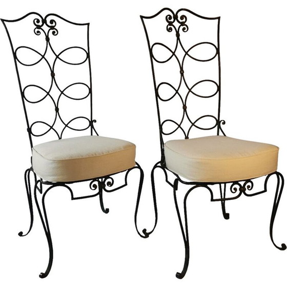 Paar alte schmiedeeiserne Stühle von René Prou, 1950
