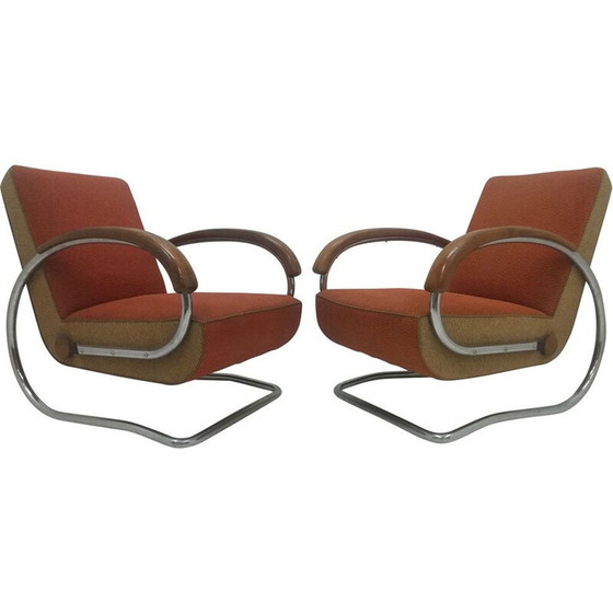 Paar alte Sessel Modell H221 von Jindřich Halabala, Tschechoslowakei 1920
