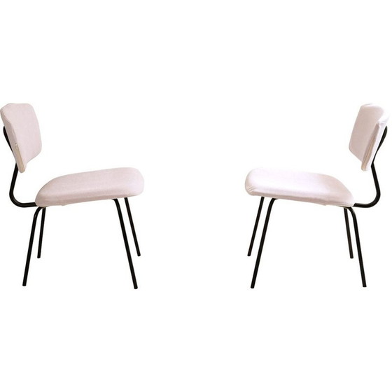 Paar alte Stühle mit neuem Stoff von C. Sclafert weiß, 1950