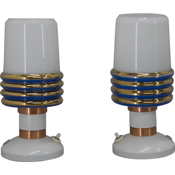 Paar alte Tischlampen aus Glas und Metall, Tschechoslowakei 1970