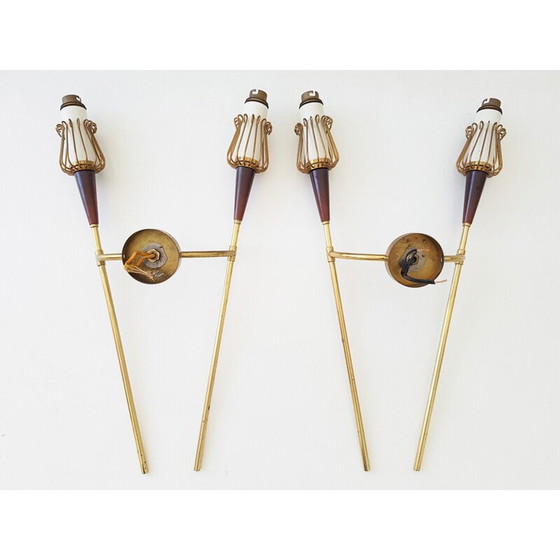 Paar alte Wandlampen aus Messing und Harz für Lunel, 1950