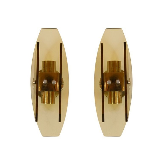 Paar bernsteinfarbene Murnao-Glas-Wandleuchten von Veca, 1970er Jahre