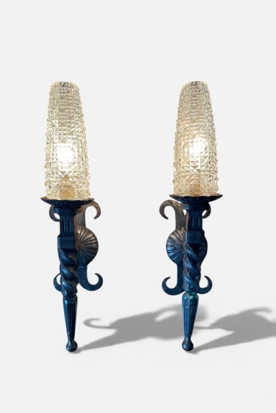 Paar brutalistische Wandleuchten aus Schmiedeeisen