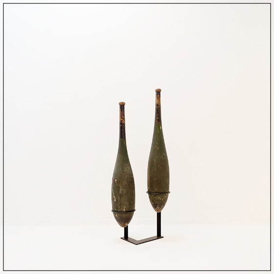 Paar große hölzerne Übungskeulen auf Sockel - Anfang 20.
