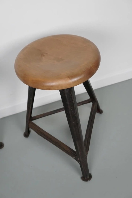 Paar Industriestahl-Fabrikhocker von Rowac, Robert Wagner Chemnitz, 1930er Jahre