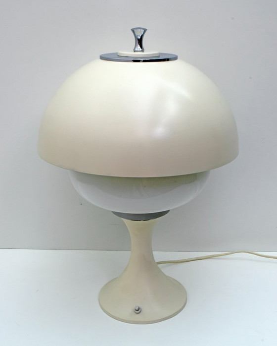 Paar Tischlampen aus lackiertem Aluminium mit mattem Finish und verchromtem Metall, interner Diffusor aus ummanteltem Glas, in ausgezeichnetem Zustand.