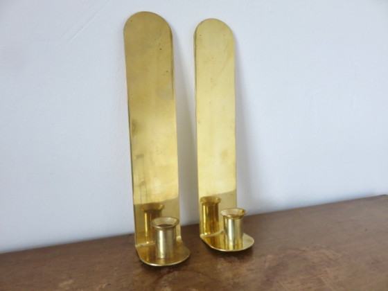 Paar Kerzenhalter aus massivem Messing, Dänemark, 70er Jahre