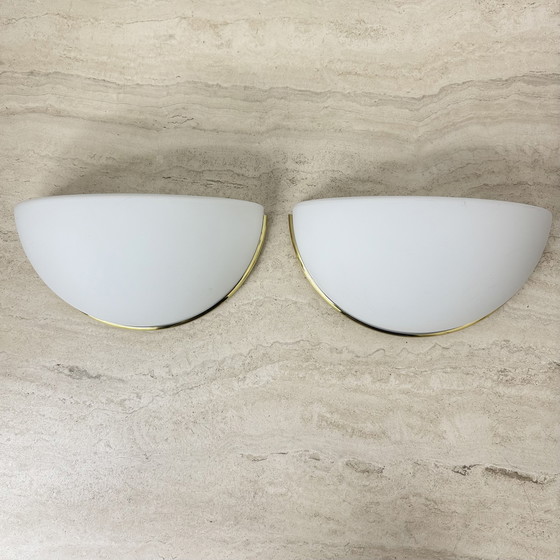 Paar Limburger Glashütte Wandleuchte Leuchter Opalglas mit goldenen Details , 1970er Jahre