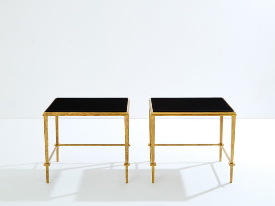 Paar Maison Ramsay Beistelltische Vergoldetes Eisen Schwarzer Lack 1950