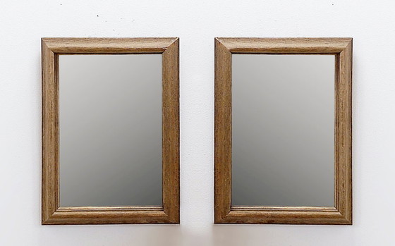 Paar rechteckige Wandspiegel mit rustikalen Holzrahmen