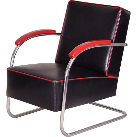 Paar schwarze Ledersessel von Mucke Melder, Tschechoslowakei 1930