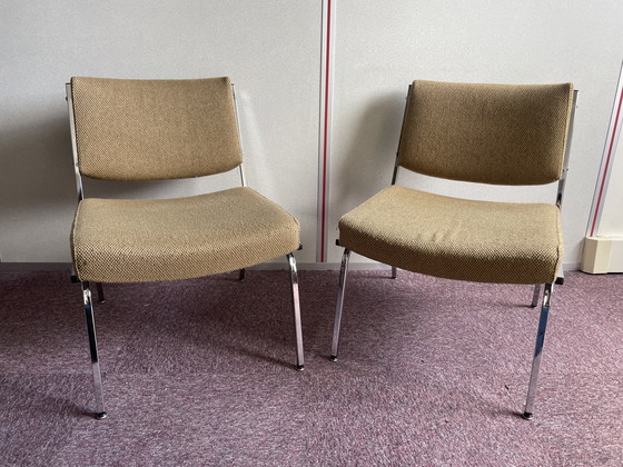 Versetzen Sie sich mit diesem exquisiten Paar Chauffeure in die Eleganz der 1970er Jahre zurück. Diese Stühle verkörpern das minimalistische und doch raffinierte Design dieser Ära und bieten eine perfekte Mischung aus Komfort und Stil. Die warme braune Textilpolsterung ergänzt das schlichte silberne Metallgestell und schafft eine zeitlose Ästhetik, die jeden Innenraum aufwertet.