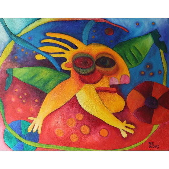 Großes, altes Gemälde mit Sandstruktur aus dem Jahr 2008, „Der Athlet“, von Paul Megens (1956). Acryl und Sand auf Leinen, gerahmt auf Aluminium. Preisvorstellung: 1400 Euro, aber ich bin für realistische Preisvorschläge offen.