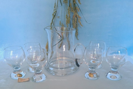 Dieses schöne STRONG MODERN Set besteht aus 1 schweren Gießkanne und 6 kleinen Weingläsern der Marke Bohemia Crystal. Die Gläser sind ein Entwurf von Pavel Hlava.