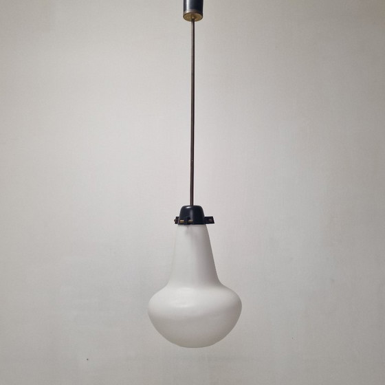 Pendelleuchte aus der Mitte des 20. Jahrhunderts, aus Milchglas und Messing, Italien, 1960er Jahre