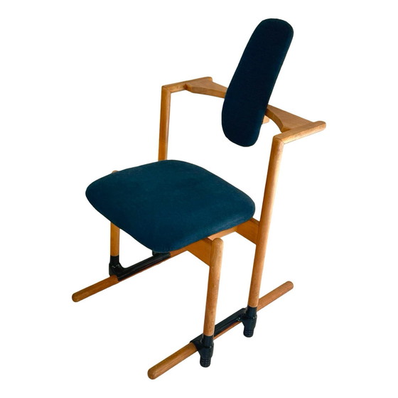 Klassisches skandinavisches Design von Stokke (später bekannt als Varier). Entworfen von dem norwegischen Designer Peter Opsvik. Der gefederte Sockel fördert eine aktive Arbeitshaltung.