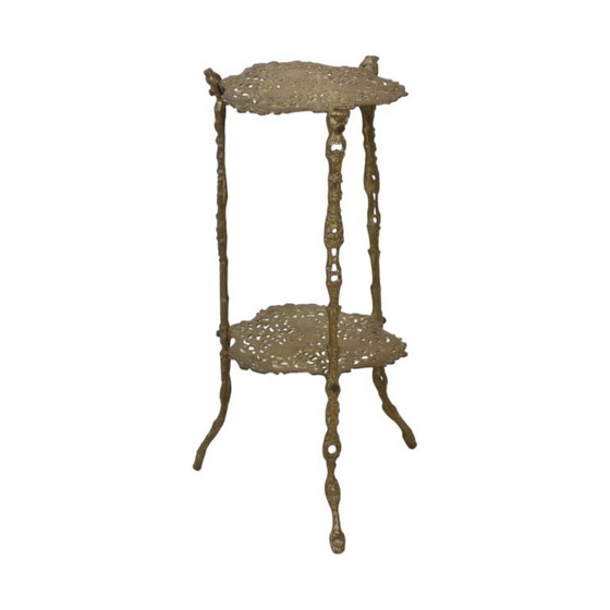 Eleganter, zweistöckiger Pflanzentisch aus Messing im typischen floralen und organischen Jugendstil, Frankreich, erste Hälfte des 20. Jahrhunderts.