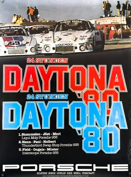 Porsche 24 Stunden Daytona '80 – Originalplakat der Werbeagentur Strenger – 1980 – 102 × 76 cm | Deutschland