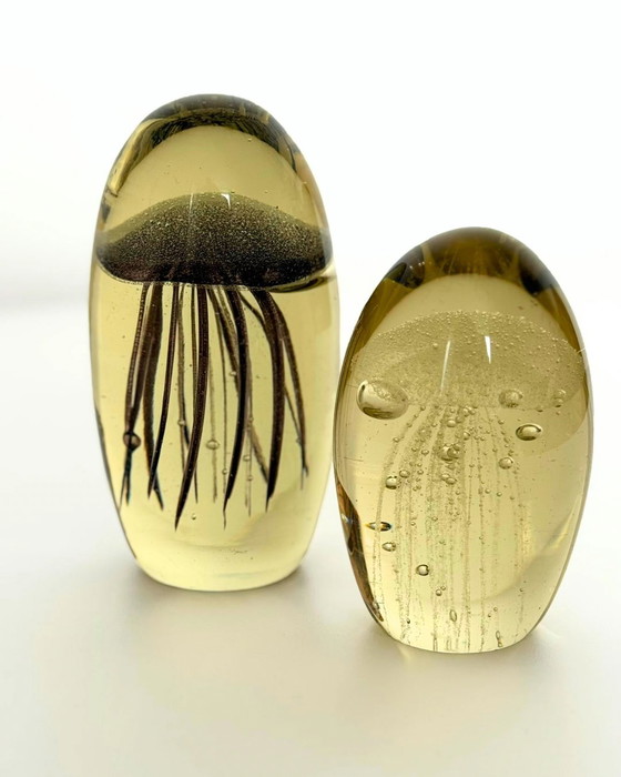 Verschönern Sie Ihren Raum mit diesen eleganten Briefbeschwerern aus Glas, die ein einzigartiges Quallendesign aufweisen.