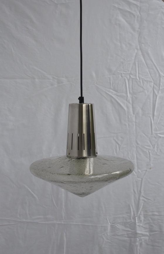 Diese einzigartige, mundgeblasene Hängeleuchte von Raak, Modell Arrowhead, ist ein echter Blickfang. Das elegante Design und die raffinierte Verarbeitung machen diese Lampe zu einer wahren Augenweide.