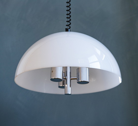 Breite (Durchmesser): 50 cm Höhe: 40 cm Kabellänge: ausziehbar auf ~120 cm Fassung: E27 Sie sind auf der Suche nach einer stattlichen Pendelleuchte mit minimalistischem Design und authentischem Retro-Look? Dann ist diese Mid Century Design-Pendelleuchte des niederländischen Herstellers Raak vielleicht genau das Richtige für Sie. Diese vermutlich in den 1960er Jahren hergestellte Lampe ist ein schöner Klassiker für Ihre Decke. Die Lampe hat einen stabilen, durchsichtigen Kunststoffschirm. Im Inneren befindet sich ein poliertes Chromgestell mit drei E27-Leuchtmitteln. Dieses Gestell wurde sorgfältig poliert, so dass kaum Rostflecken sichtbar sind. In Anbetracht ihres Alters ist die Lampe in einem ausgezeichneten Zustand. Haben Sie noch Fragen? Haben Sie Fragen zu diesen Lampen oder deren Lieferung? Zögern Sie nicht, eine Nachricht zu hinterlassen. Sowohl an Wochentagen als auch an Wochenenden versuchen wir, innerhalb weniger Stunden zu antworten. Sehen Sie sich auch unsere anderen Anzeigen für weitere ungewöhnliche Vintage-Designer-Lampen an.