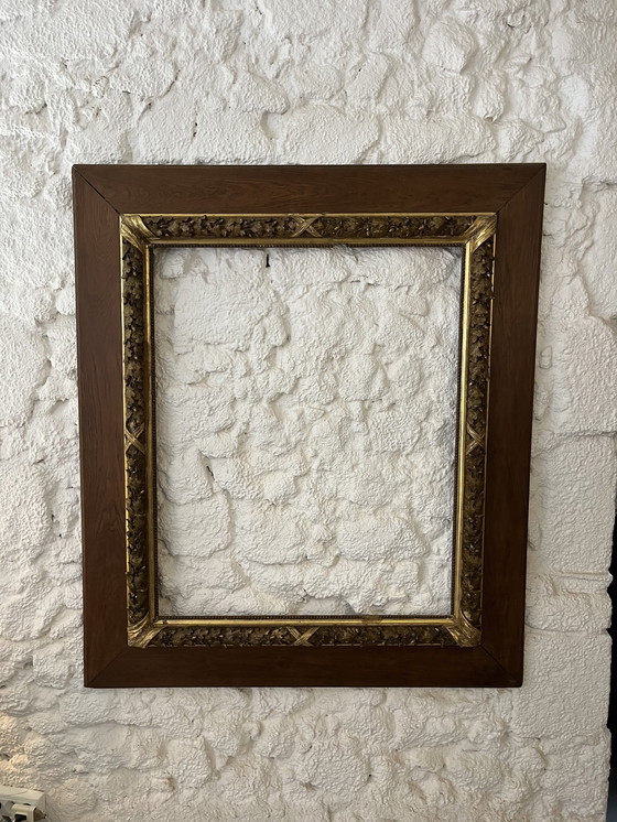 Großformatiger Rahmen - Montage in 2 Teilen Vergoldeter Stuck - Eichenlaubdekor ENDE XVIII DEB XIX Platte Eichenband später hinzugefügt Schöne Originalvergoldung ( Blattgold)
