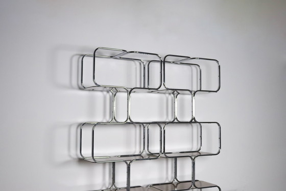 Dieser moderne Raumteiler von Tricom Italy besticht durch sein schlichtes und zeitgemäßes Design, das jedem Raum einen Hauch von Eleganz verleiht. Er ist aus hochwertigem Metall gefertigt und hat eine verchromte Oberfläche, die für einen raffinierten Look sorgt. Dieser Raumteiler ist ideal, um getrennte Bereiche in offenen Räumen zu schaffen. Er ist sowohl funktional als auch stilvoll.