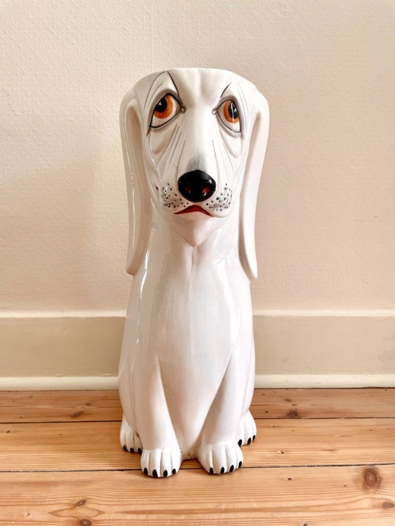 Regenschirmständer Hund Basset aus Keramik, Italien