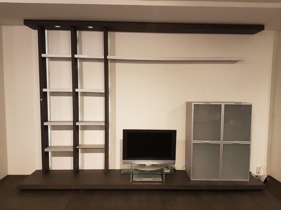 Riegel Wandschrank, 3-teilig. Material: Eiche Basalt mit Aluminium. Maße: Breite: 360 cm, Höhe: 248 cm. Dies ist unser Ausstellungsmodell (siehe Fotos). Montage nicht im Lieferumfang enthalten.